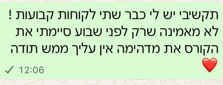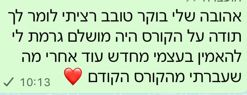 אחרי הקורס למדתי להאמין בעצמי, אני מקבלת בממוצע 5 לקוחות ביום ואני בטוחה בעצמי באמת